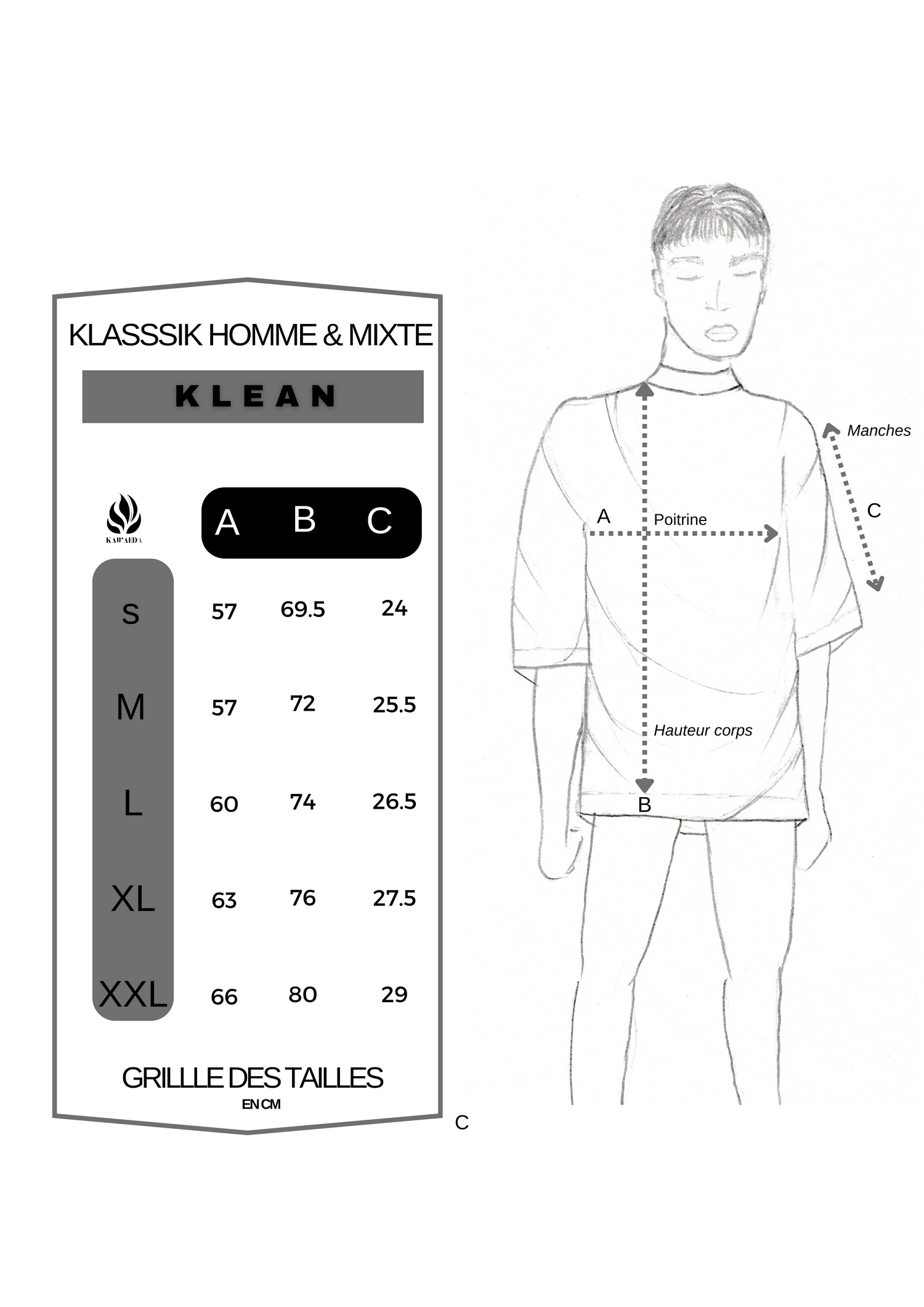 Nos produits se distinguent par des coupes uniques, conçues avec soin pour garantir un style et un confort inégalés. Afin de vous accompagner au mieux dans votre choix, nous mettons à votre disposition un guide des tailles détaillé.