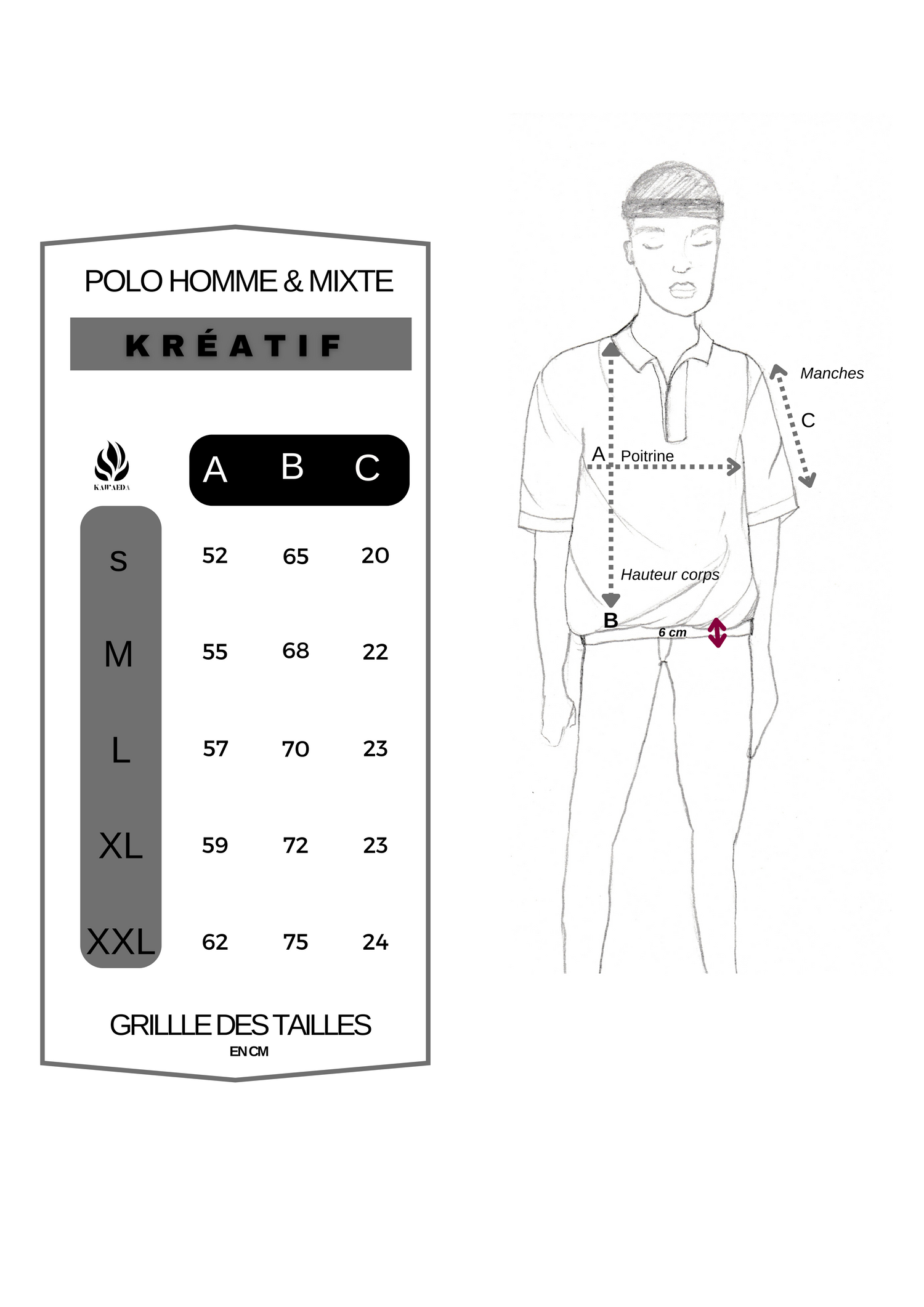 Nos produits se distinguent par des coupes uniques, conçues avec soin pour garantir un style et un confort inégalés. Afin de vous accompagner au mieux dans votre choix, nous mettons à votre disposition un guide des tailles détaillé.